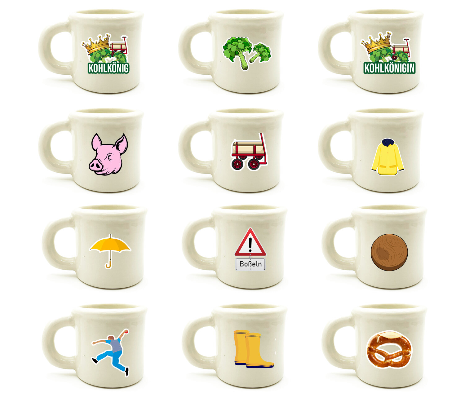 Ob Kohlkönig, Bollerwagenfahrer oder Gummistiefel-Profi – hier findet jeder sein Motiv. Mit witzigen Symbolen rund um die legendäre Kohlfahrt sind die Pinnchen der perfekte Begleiter für jede Zwischenstation.